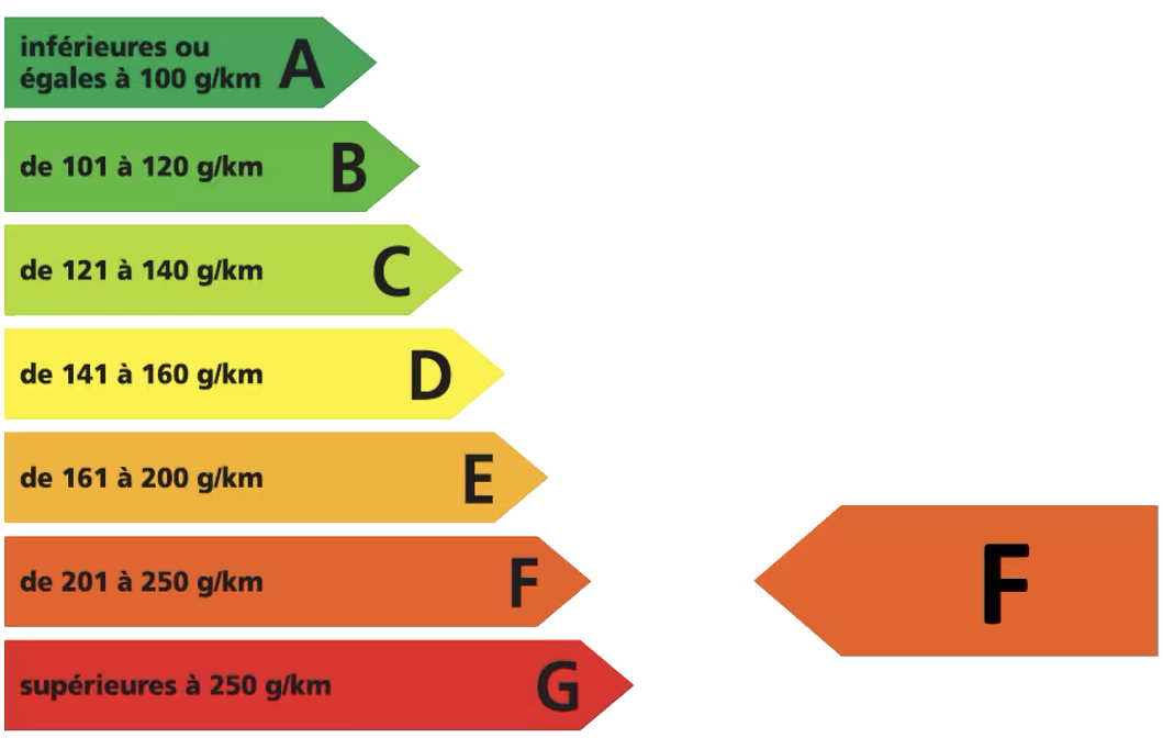 Émissions de CO2 en cycle mixte comprises entre 215 g/km et